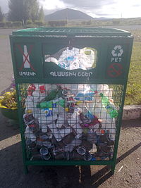 A waste container is a container for temporarily storing refuse and waste. Different terms are in use, depending on the language area, the design and material (small or large, with or without a lid; metal or plastic) and the respective site (public space, private home).