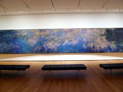 Claude Monet, Reflections of Clouds on the Water-Lily Pond, c. 1920, 200 × 1,276 cm (78.74 × 502.36 in), oil on canvas, Museum of Modern Art, New York City
