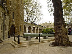 Ancient Chinese cannon displayed in the Tower of London.