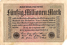 In 1919, one loaf of bread cost 1 mark; by 1923 the same loaf of bread cost 100 billion marks.