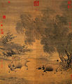 Willow tree in a painting by Chinese artist Li Di, 12th century, Song Dynasty.