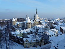 The Old Town of Tallinn, Estonia, full of snow on 1 January 2010