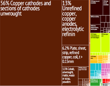 Graphical depiction of Zambia's product exports in 28 colour-coded categories.